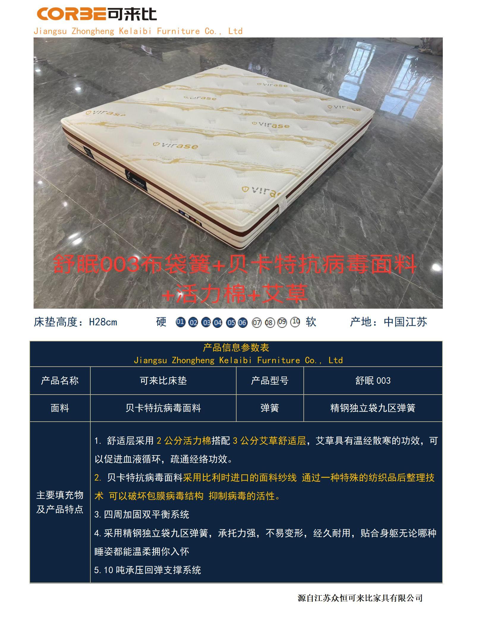 舒眠003布袋簧+貝卡特抗病毒面料+活力棉+艾草