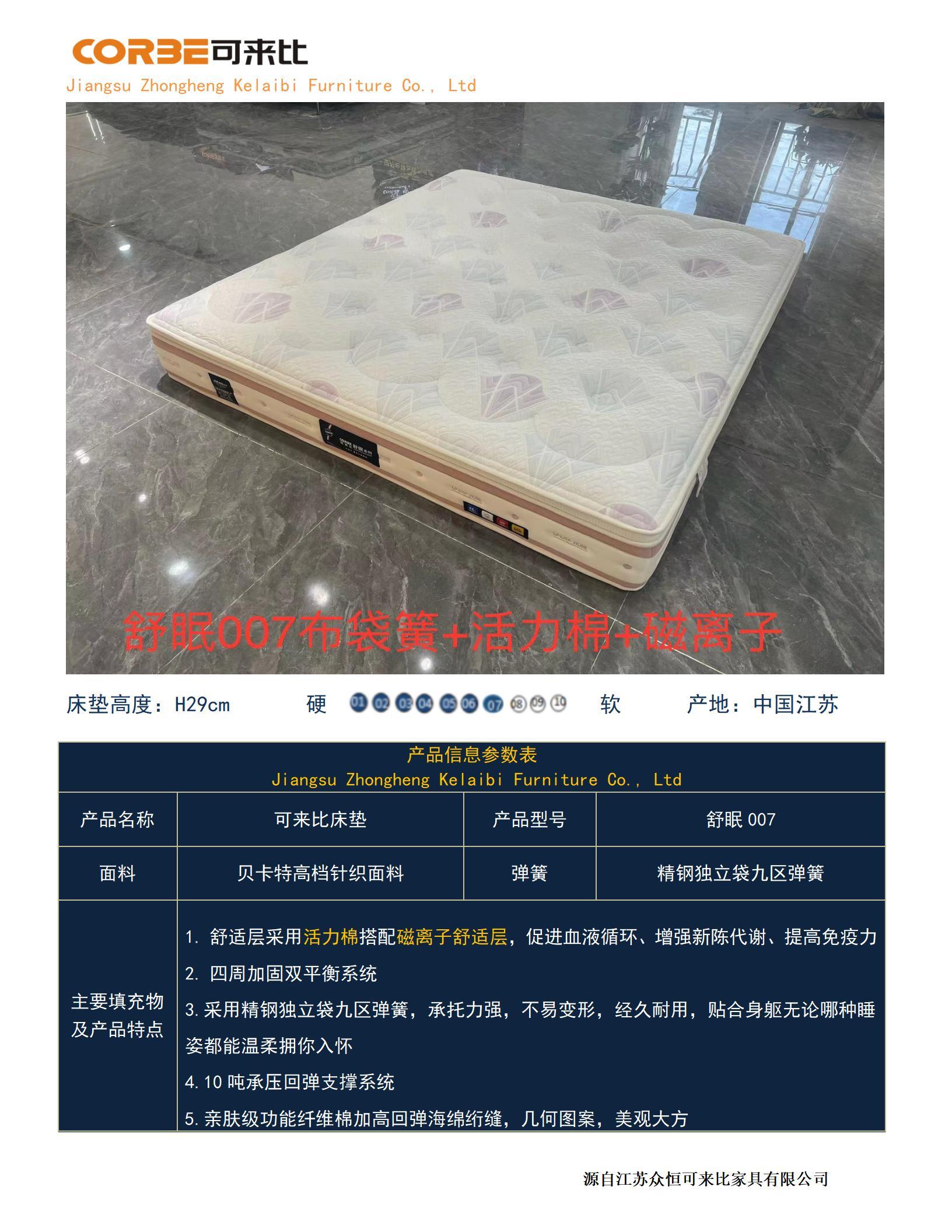 產(chǎn)品名稱:舒眠007布袋簧+活力棉+磁離子