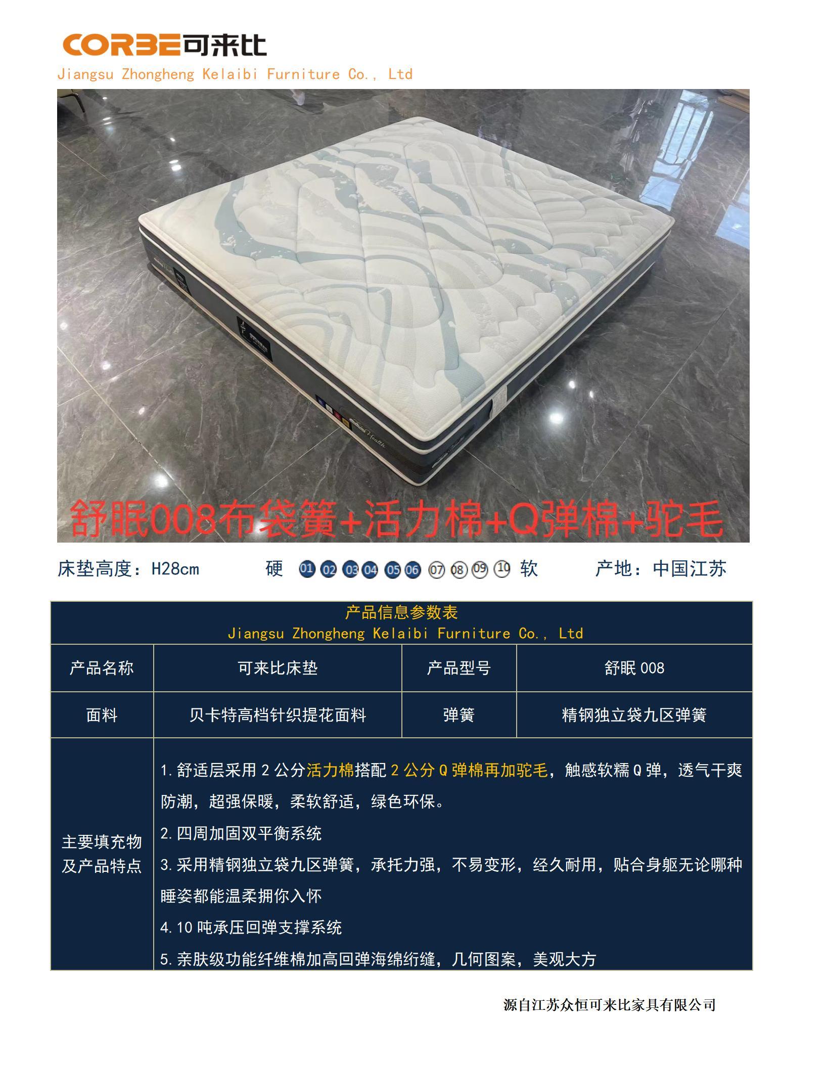 舒眠008布袋簧+活力棉+Q彈棉+駝毛